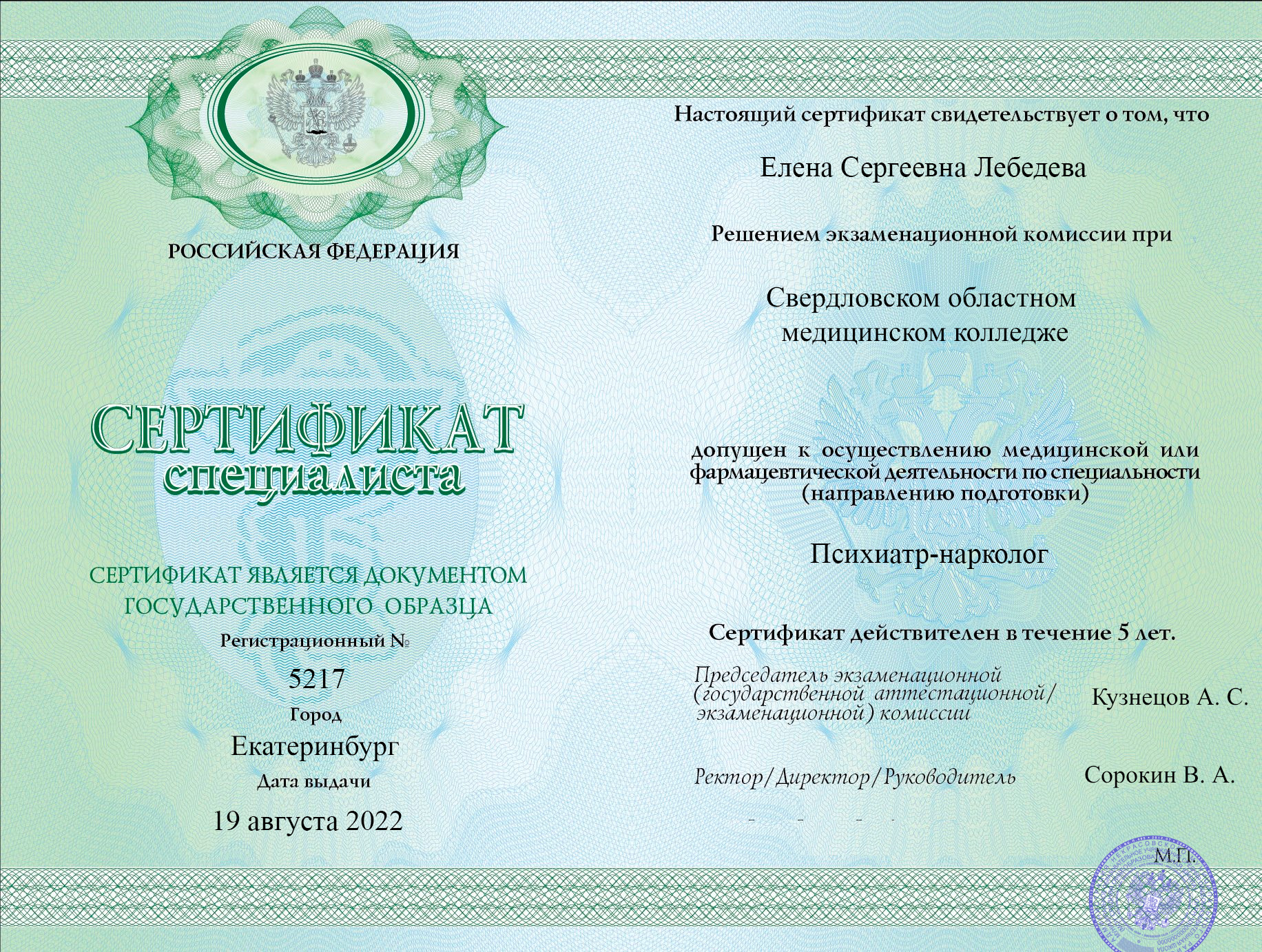 Елена Сергеевна Лебедева врач нарколог клиники доктора Стукаловой в Павлово